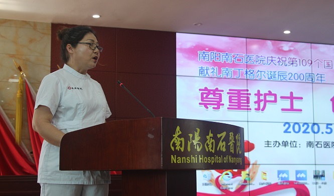 院長趙俊祥在講話中對護理工作給予了充分肯定:護理人員撐起了醫(yī)院的半邊天,護理工作任重而道遠,平凡而光榮,他希望大家繼續(xù)繼承和發(fā)揚南丁格爾的“人道、博愛、奉獻”精神,一切從實際出發(fā),牢固樹立病人第一的服務(wù)理念,落實各項規(guī)章制度,確保患者安全,不斷用新的知識解決工作中遇到的新問題,為南石醫(yī)院服務(wù)贏得了很好的口碑,感謝大家對護理工作的付出和奉獻。